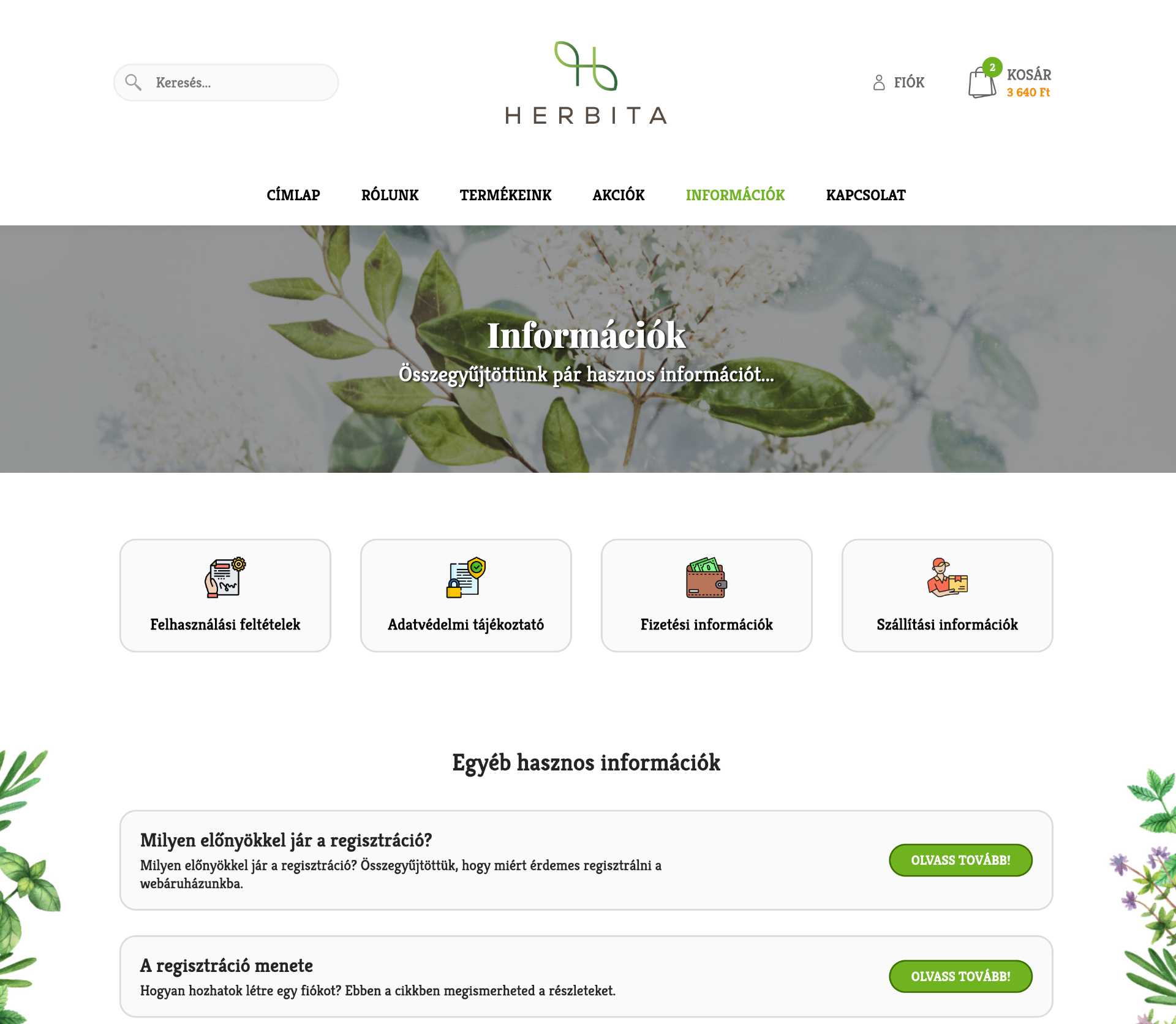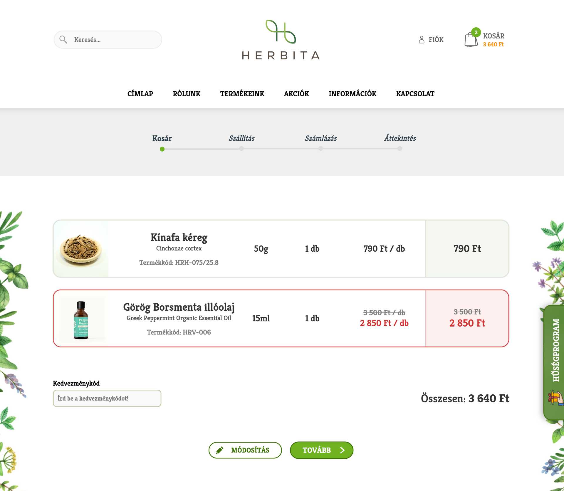 Fejlesztett webáruház: herbita.hu